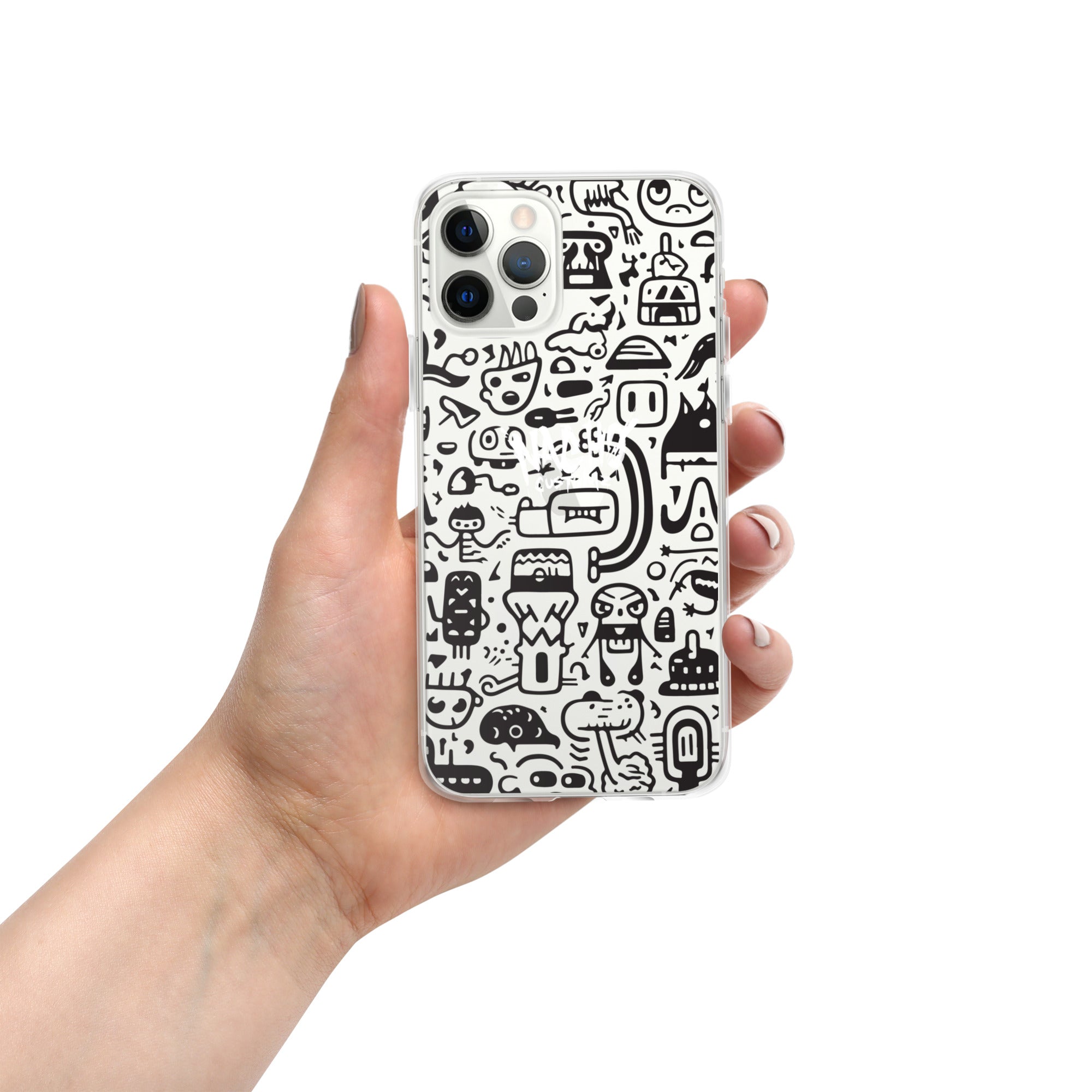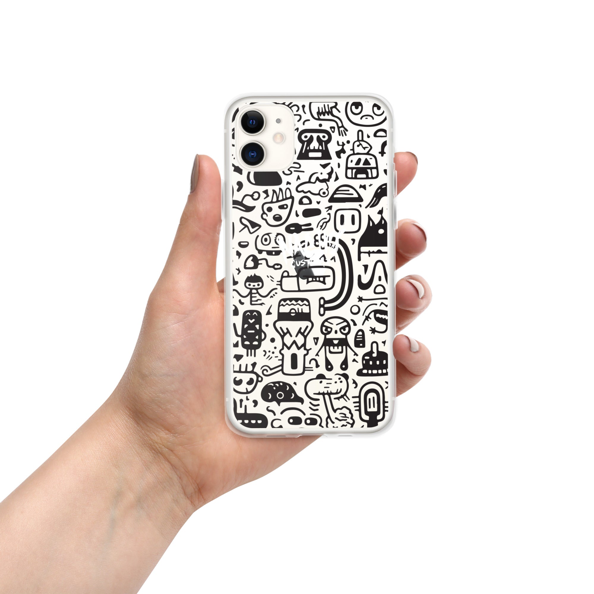 Black Doodles Clear Case for iPhone®